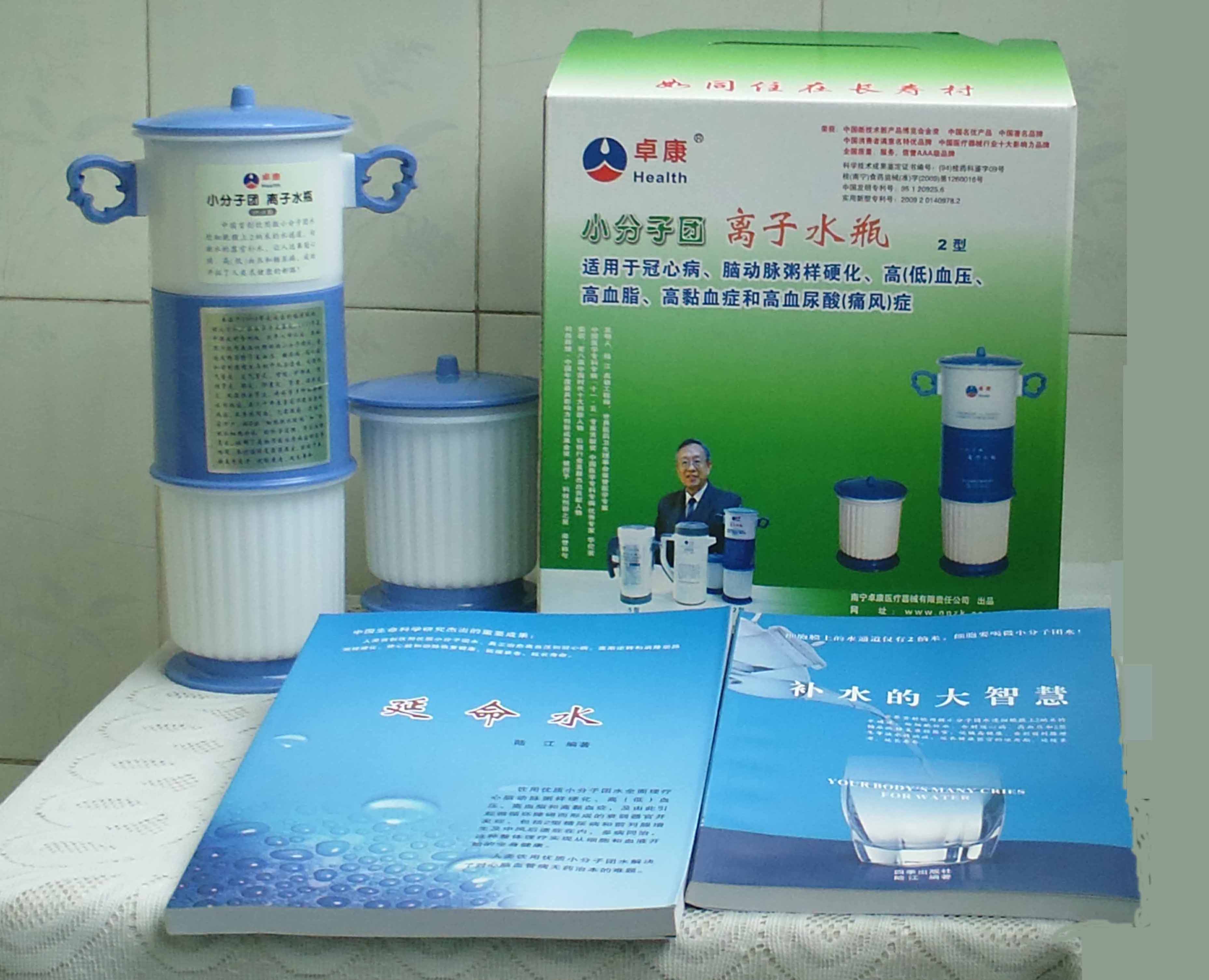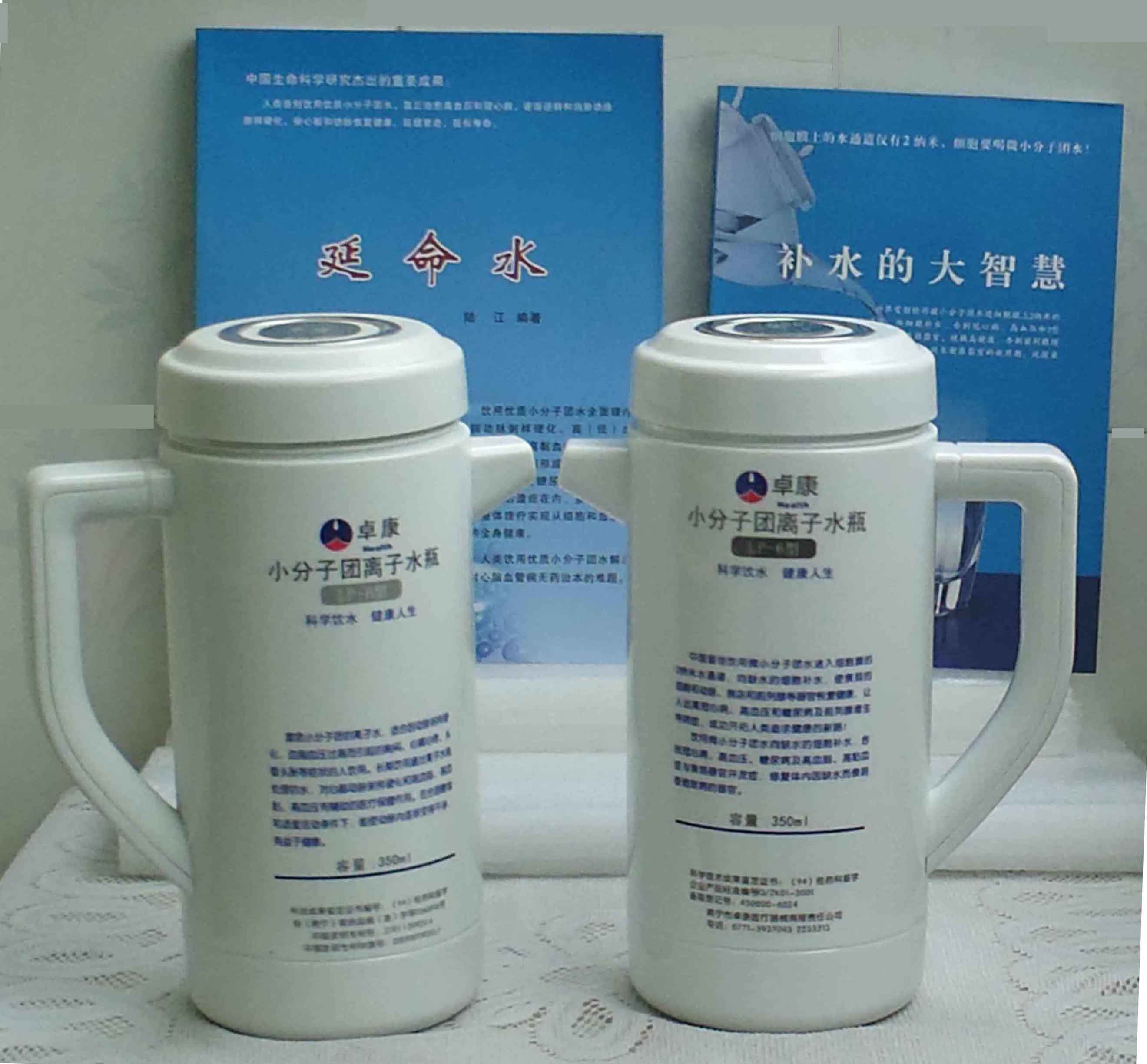本品大量用戶的使用效果表明,能治愈冠心病、腦動脈硬化、原發(fā)性高(低)血壓、高血脂、高粘血癥、高血尿酸癥(痛風)和2型糖尿病、衰弱器官并發(fā)癥(前列腺增生、腎衰與尿毒癥)及中風后遺癥等療效好。產品配信譽卡。使用壽命30年,不換芯,易清洗。團購優(yōu)惠。從郵局匯款,匯費1%,地址按本頁下方地址、聯(lián)系人寫。從銀行匯款,請點擊[聯(lián)系匯款]欄,從工商銀行匯款,建設銀行、農業(yè)銀行匯款,均免收匯費,匯款后20--30分鐘內發(fā)短信,可用微信轉帳,均免匯費,微信號即手機號13768308380。匯款后,告知你的姓名和地址,我公司聯(lián)系人手機號是:13768308380卓康牌離子水瓶為我公司獨家生產,郵購產品配《補水的大智慧》彩印書一本,另配四季出版社出版的新書《補水的大智慧》一本,并配光盤一張(含央視主持人釆訪陸江的對話視頻)。目前市場和"淘寶網(wǎng)"上有人兜售假冒的偽品,望讀者審察辯別真?zhèn)危旒僬哓飧`假冒本公司的各種證、獲獎獎項、專利號和外包裝盒上的中英文字,包括科技成果的鑒定意見等,請讀者注意防偽。如何識別假貨?已經買了假貨怎么辦?(請點擊[打假掠影][打假掠影])。
