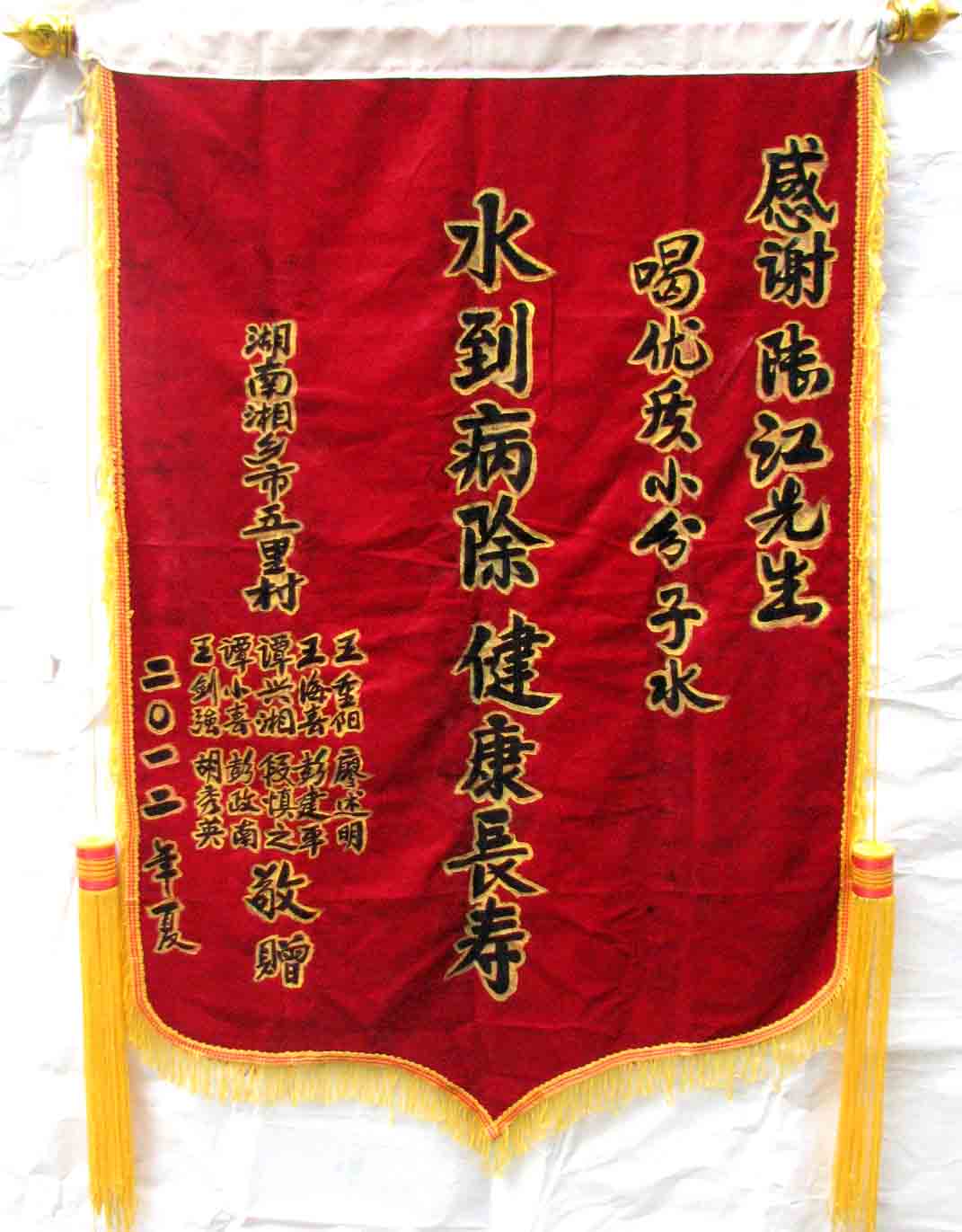 2015年潘志山主動寫一篇感想《我以親身實踐打破了冠心病、高血壓、糖尿病需終生服藥的神話》說堅持按發(fā)明人陸?江先生倡導的用已饑方食的方法合理膳食,我的健康狀況越來越好:糖尿病造成的視力下降有了明顯的恢復,末梢神經炎導致的指端潰爛現(xiàn)在完全痊愈,痔瘡自從飲用微小分子團水半年后就再也沒有復發(fā)過,氣滯血瘀造成的嘴唇暗紫也漸漸變得紅潤,舌下靜脈黑紫消失,足背的動脈由以前的隱約感到跳動現(xiàn)在變得清晰有力。[13]潘先生披露的訣竅,一是飲用微小分子團水給脫水細胞補水,二是已饑方食”養(yǎng)生智慧,患者都能做到。