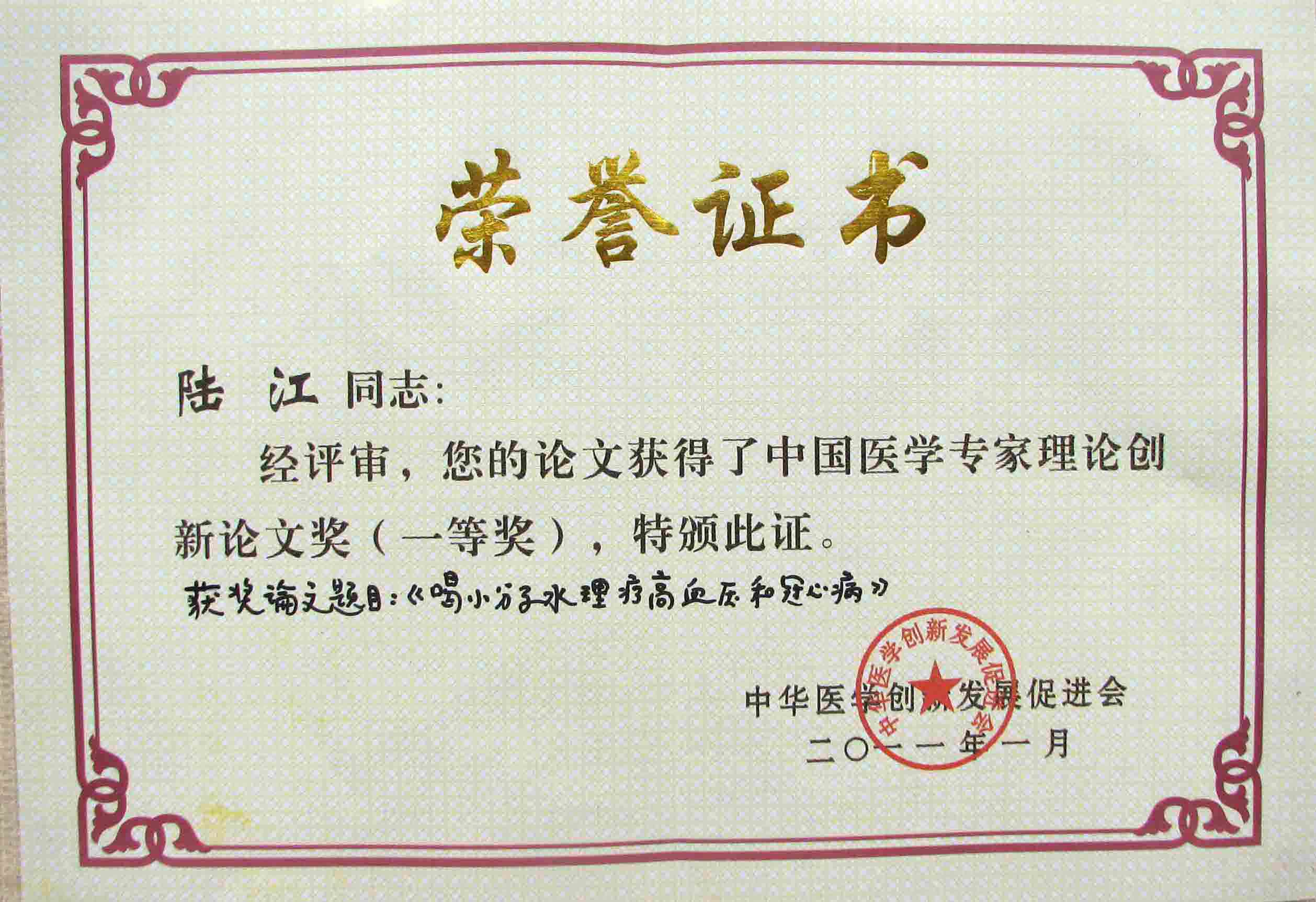 人類幾千年來患以上病癥需終生服藥,幾十年也不能治愈。可是我國南寧的高級工程師陸 江,于1990年想根治高血壓,研究發(fā)明了離子水瓶,處理出微小分子團水供飲用,經過醫(yī)院臨床試用和專家鑒定,1999年獲中國發(fā)明專利權,產品于2000年投放市場后一直跟蹤調查,據(jù)全國各地用戶反饋:祛除了高低血壓、糖尿病和冠心病,并使前列腺增生、咽喉炎、鼻竇炎、慢性氣管炎、支氣管炎、矽肺病、哮喘、慢性胃炎、腸炎、慢性膽囊炎、慢性腎炎、腎衰、膀胱炎、便秘、痔瘡、風濕性關節(jié)炎和濕疹皮炎及中風后遺癥等病癥不藥而愈。為什么喝微小水能治20多種病?陸 江從1991年德國科學家發(fā)現(xiàn)細胞膜水通道僅為2納米獲得啟發(fā),認為多種器官患病是因細胞脫水,不能正常代謝和分裂增殖,才使器官細胞減少致衰弱萎縮而形成細胞缺水性病癥。22年來的實踐有力地支持了“細胞脫水致病”這一重要論點,表明喝微小水可滿足細胞的生理需求,補水就能祛病,是生命科學新亮點。